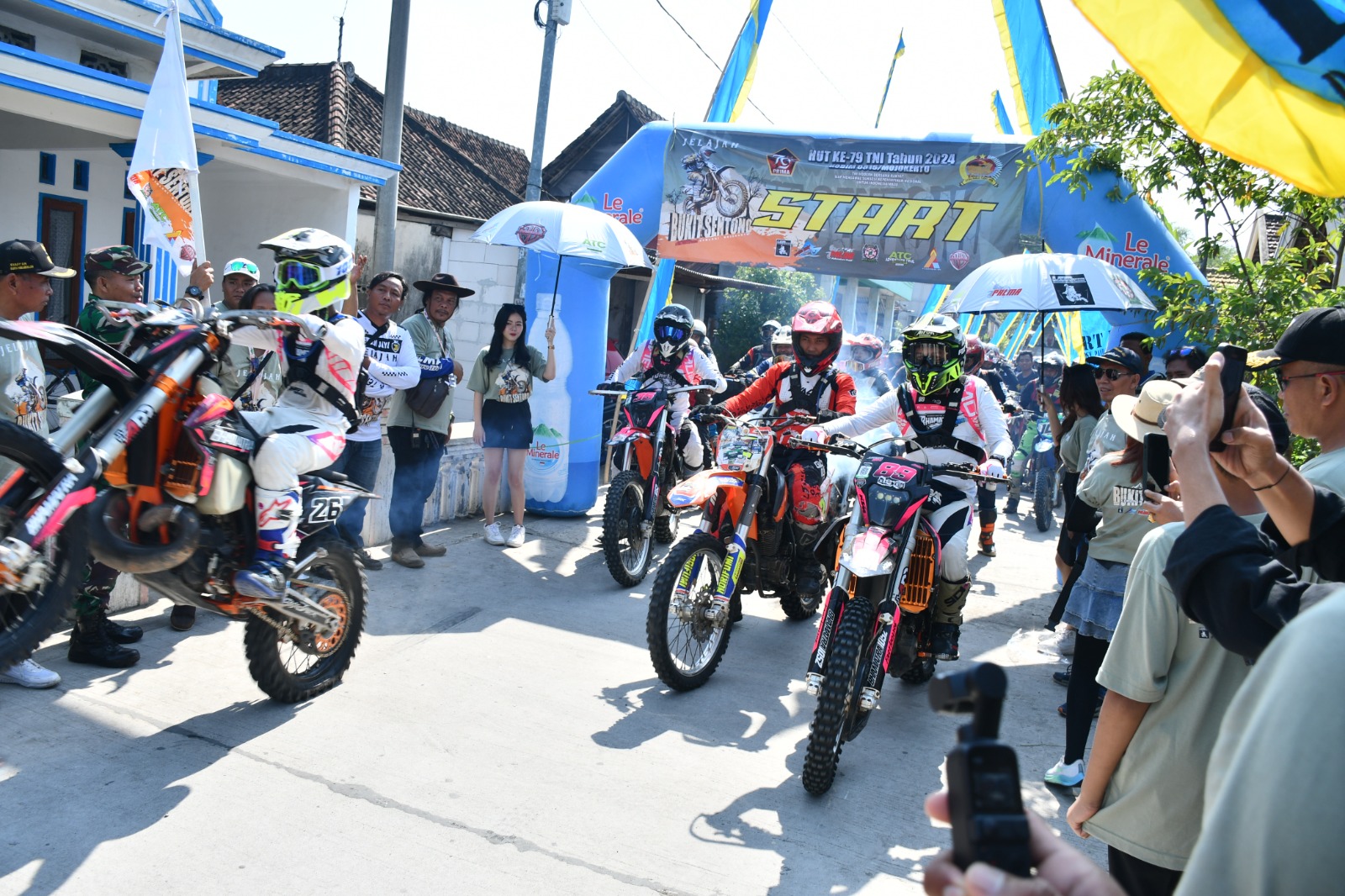 Tampak hadir dalam kegiatan, Dandim 0814/Jombang Letkol Kav David Eko Junanto, S.I.P., Kasdim 0815 Mayor Arh GN Putu Ardana, S.S., para Perwira Staf Kodim 0815, Ketua Panitia Kegiatan Trail Eddy Nurseto, Plt. Camat Kemlagi Niki Socrates, Kapolsek Kemlagi Iptu Marianto, Danramil Kemlagi diwakili Pelda Edy Setiawan, dan Kades Pandankrajan Syafian. (Wb/Sit)