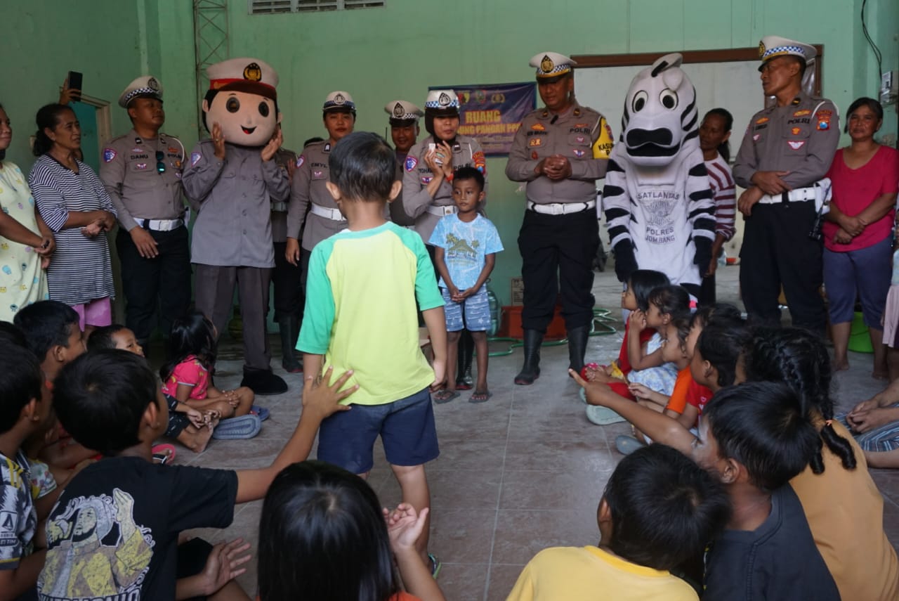 Kapolres Jombang AKBP Eko Bagus Riyadi melalui Kasat Lantas Iptu Rita Puspitasari mengatakan, Polisi datang tidak sekedar untuk menghibur anak-anak di pengungsian.