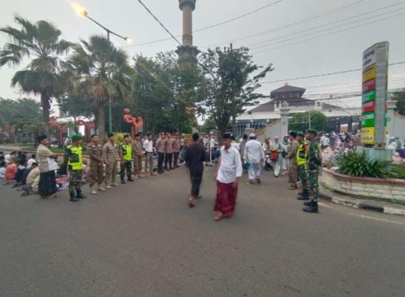BANGKALAN,Rajawali1news.com – Personel Koramil 0829-01/Kota Bangkalan melaksanakan kegiatan monitoring wilayah sekaligus turut serta dalam pengamanan pelaksanaan sholat Idul Fitri 1446 H/2025 M bertempat di masjid agung Sultan Kadirun Kelurahan Demangan, Kecamatan Bangkalan. Senin (31/3/25).