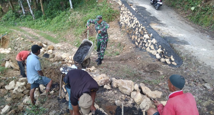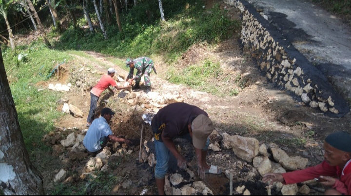 Karya bakti ini difokuskan pada pembangunan plensengan (dinding penahan tanah) di sisi jalan yang rawan longsor. Kegiatan gotong royong ini merupakan bentuk sinergi antara TNI dan masyarakat dalam menjaga keselamatan lingkungan sekaligus mempererat kemanunggalan TNI dengan rakyat.