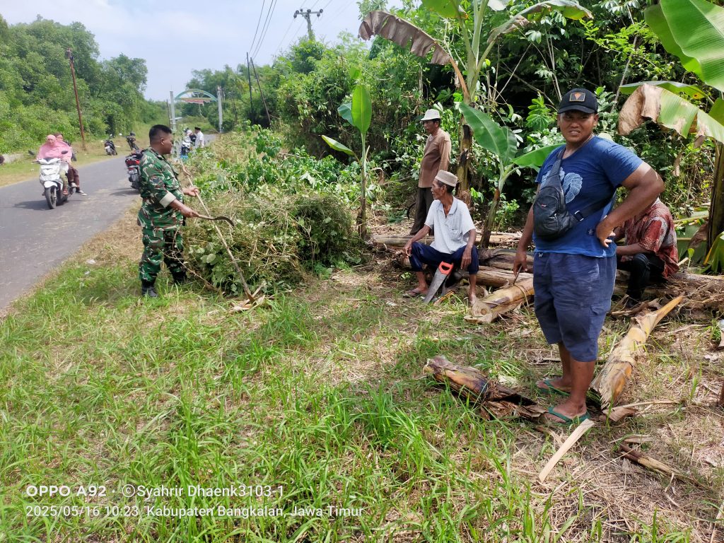 BANGKALAN,Rajawali1news.com – Dalam rangka menciptakan lingkungan yang bersih dan sehat, Koramil 0829-12/Modung melaksanakan kegiatan Jumat Bersih bersama warga Dusun Langkap, Desa Langpanggang, Kecamatan Modung, Kabupaten Bangkalan, pada Jumat (16/5/2025).