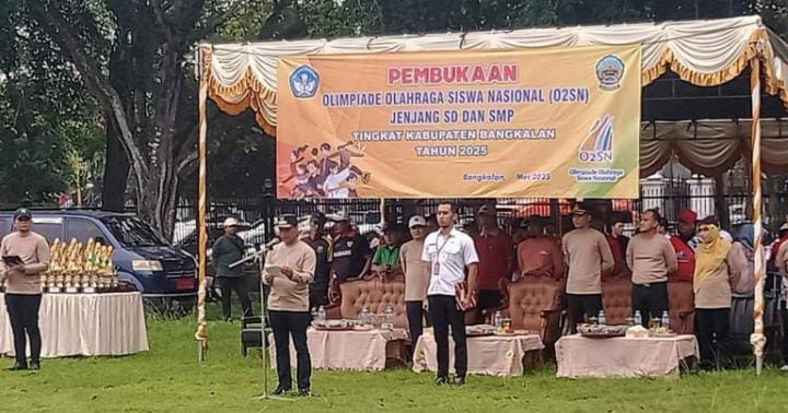 BANGKALAN,Rajawali1news.com – Bupati Bangkalan, Lukman Hakim, didampingi Wakil Bupati Bangkalan, Moh. Fauzan Ja’far, secara resmi membuka kegiatan Olimpiade Olahraga Siswa Nasional (O2SN) Jenjang SD Tingkat Kabupaten Bangkalan Tahun 2025 yang digelar di Alun-Alun Utara, Rabu (28/5/2025) pagi.
