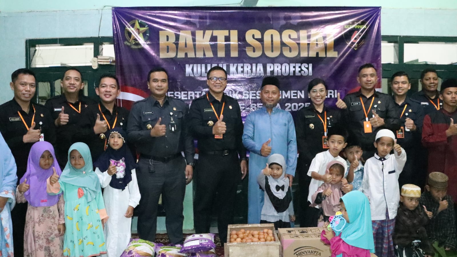Perwakilan dari Serdik Sespimmen Dikreg 65 menyampaikan bahwa kegiatan ini merupakan bagian dari nilai kepemimpinan yang berorientasi pada kepedulian sosial.