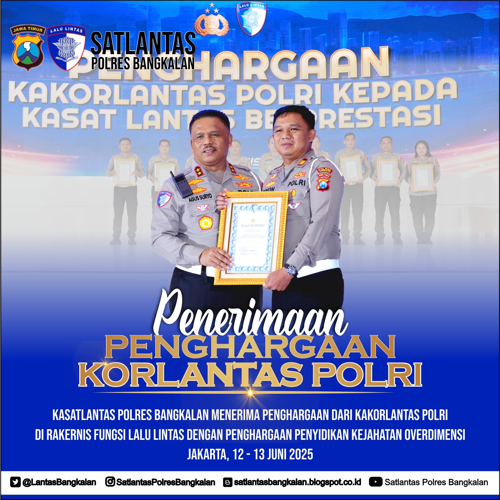 Kali ini Kasatlantas Polres Bangkalan diundang ke Jakarta Selatan pada Jumat (13/6/2025) untuk menggaet piagam penghargaan dari Korps Lalu Lintas berkat kemampuan satuannya dalam Penanganan overdimensi.