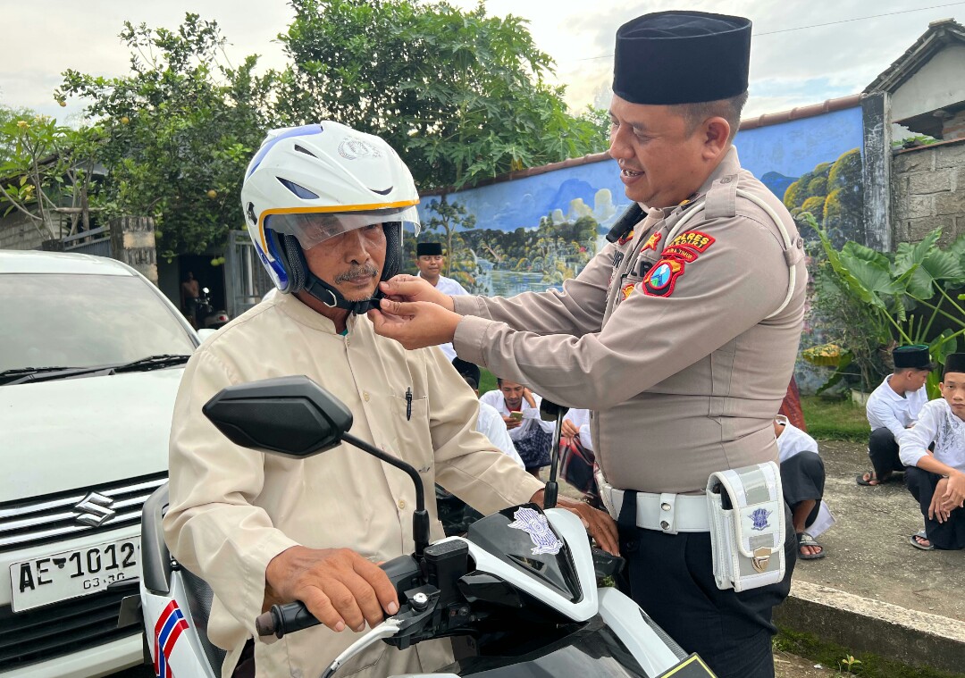 Pada kegiatan tersebut, Satlantas Polres Kediri kali ini berkunjung di Pondok Pesantren Roudlotul Ibaad di Desa Ngino Kecamatan Plemahan Kabupaten Kediri, pada Sabtu (14/6/2025) sore.