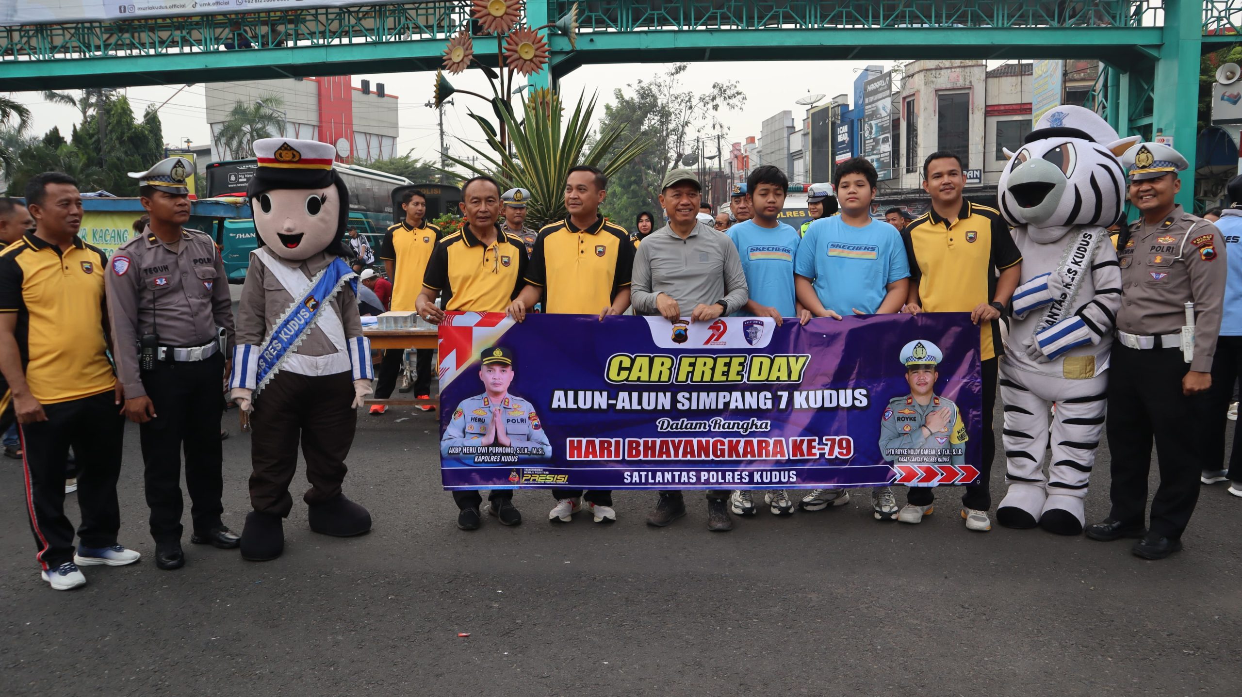 Kudus,Rajawali1news.com – Dalam rangka memperingati Hari Bhayangkara ke-79, Polres Kudus menghadirkan berbagai pelayanan istimewa untuk masyarakat saat kegiatan Car Free Day (CFD) di Alun-Alun Simpang 7 Kudus, Minggu (22/6) pagi tadi.