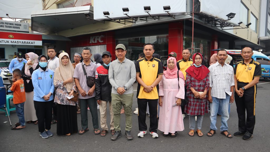 Kapolres Kudus AKBP Heru Dwi Purnomo bersama Bupati Kudus Sam’ani Intakoris turut hadir menyapa masyarakat dan meninjau langsung setiap stand pelayanan.