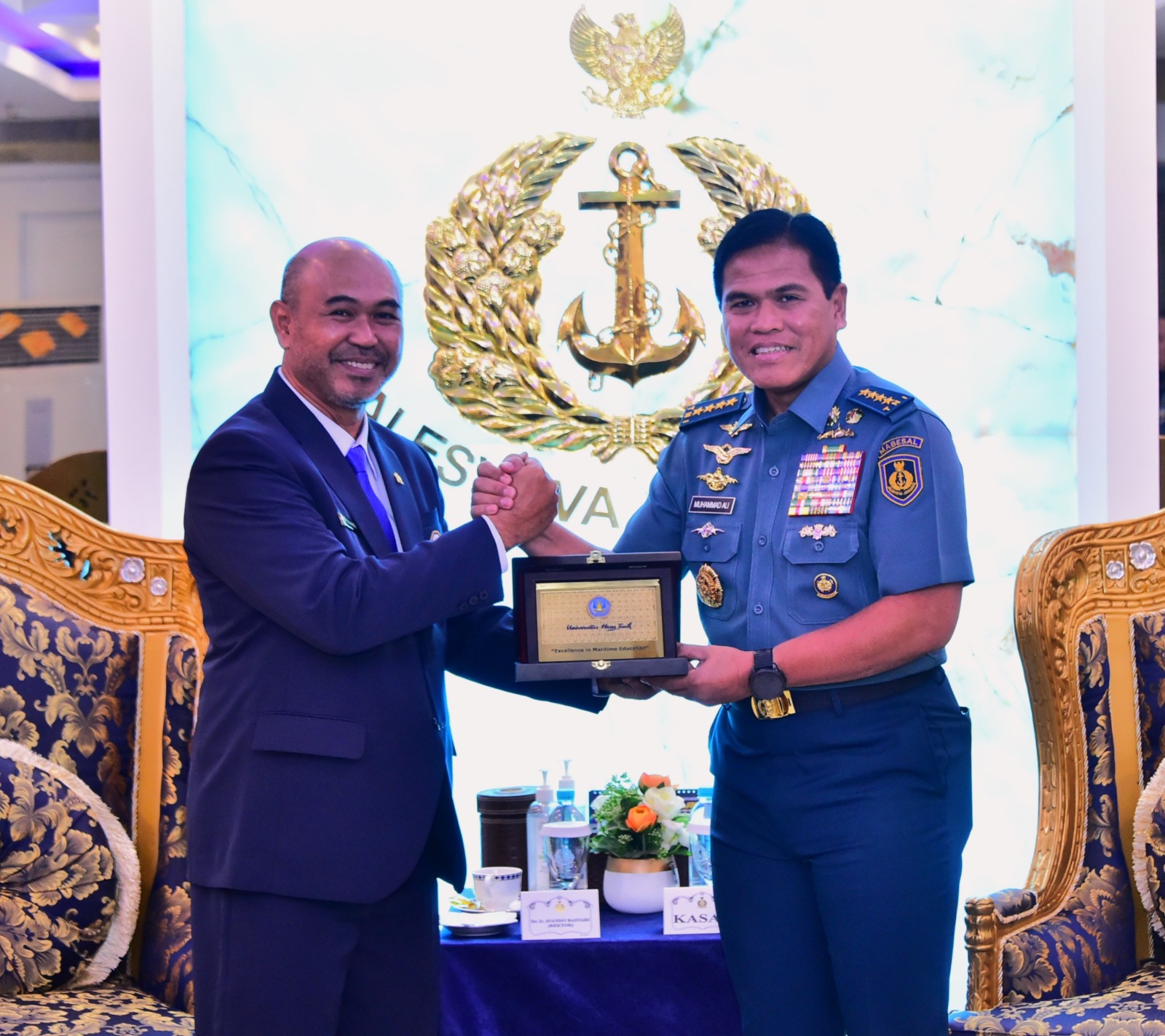 Kunjungan diawali ke Markas Besar TNI Angkatan Laut (Mabesal), Cilangkap, di mana Rektor UHT disambut oleh Kepala Staf Angkatan Laut (Kasal), Laksamana TNI Dr. Muhammad Ali, S.E., M.M., M.Tr.Opsla. Pertemuan berlangsung dalam suasana hangat dan penuh semangat kolaboratif.