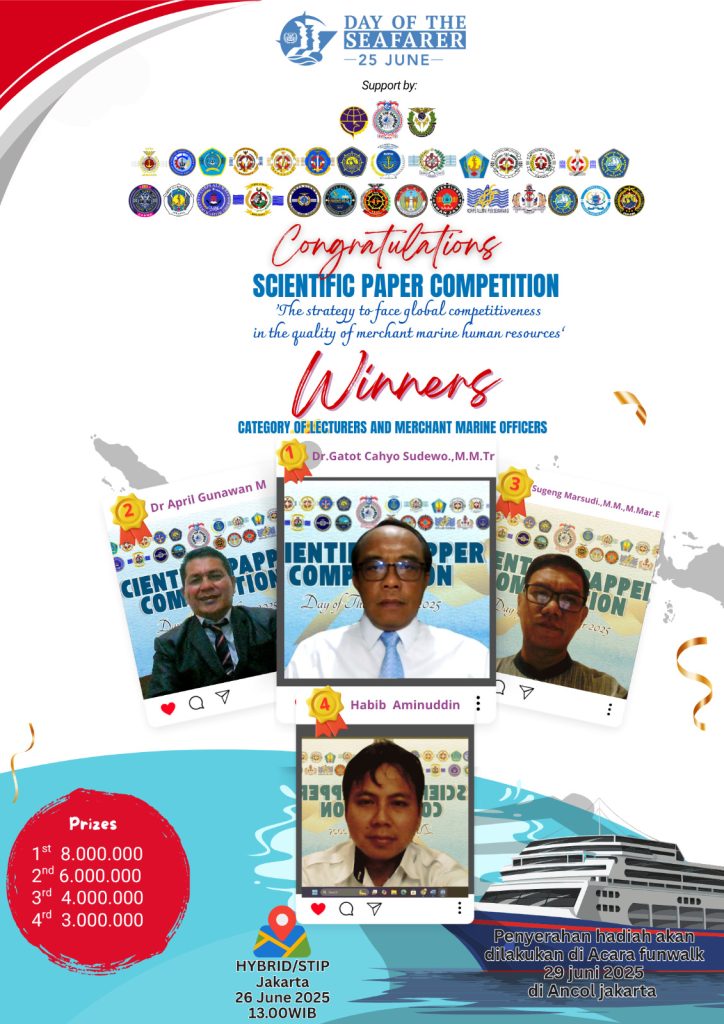 Taruna FVP UHT Tunjukkan Kiprah di Ajang Scientific Paper Competition Hari Pelaut Sedunia 2025, Dosen FVP UHT Juara 3 dan 4