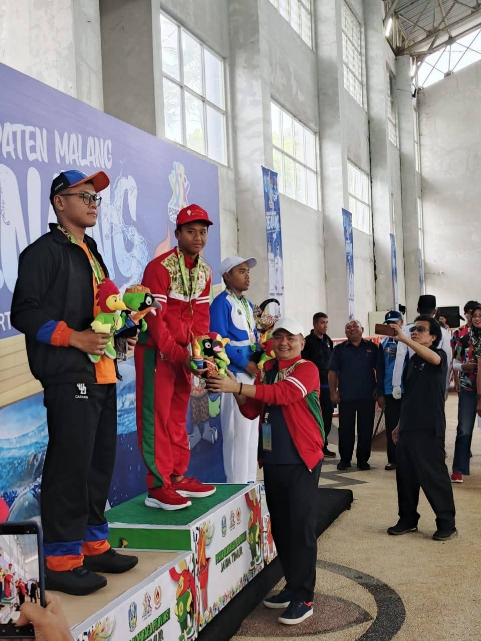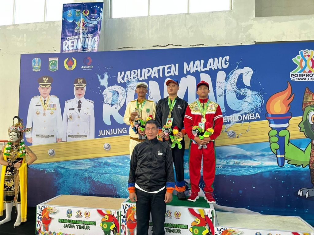 BANGKALAN,Rajawali1news.com – Prestasi membanggakan kembali ditorehkan oleh pemuda asal Bangkalan dalam ajang olahraga bergengsi tingkat provinsi. Satria Dwi Candra, putra dari anggota Kodim 0829/Bangkalan Peltu Iswadi, sukses menyabet dua medali emas dan satu medali perunggu dalam cabang olahraga renang pada Pekan Olahraga Provinsi (Porprov) Jawa Timur IX tahun 2025.