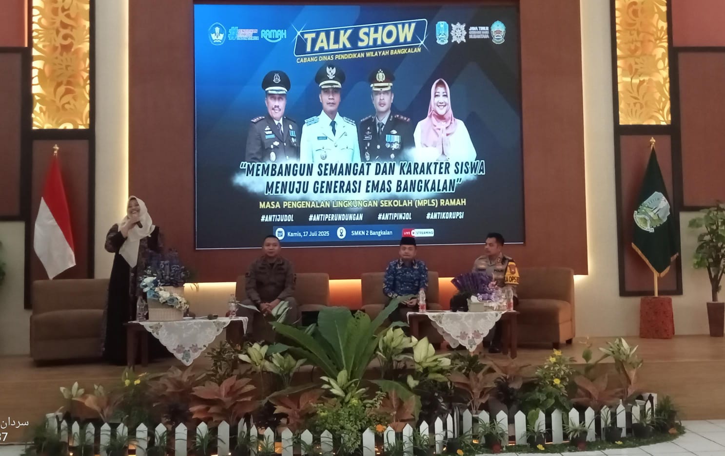 Hal ini disampaikan langsung oleh Wakil Bupati Bangkalan, Fauzan Ja’far, dalam kegiatan talk show bertema “Membangun Semangat dan Karakter Siswa Menuju Generasi Emas Bangkalan” yang digelar dalam rangka Masa Pengenalan Lingkungan Sekolah (MPLS) di SMKN 2 Bangkalan, Jln.Halim Perdana Kusuma (Ring Roud) Kamis (17/07/2025).
