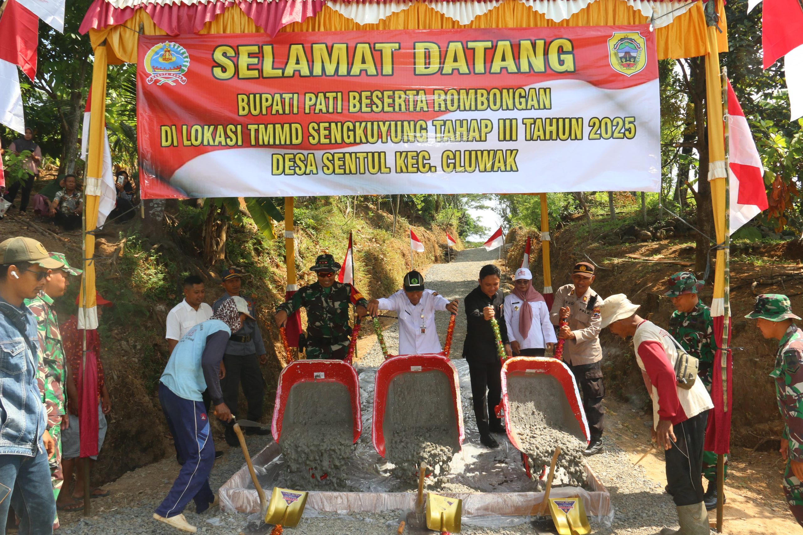 Dengan mengusung tema “Dengan Semangat TMMD Mewujudkan Pemerataan Pembangunan dan Ketahanan Nasional di Wilayah”, kegiatan dibuka secara resmi oleh Bupati Pati yang diwakili oleh Kepala Dispermades, Tri Hariama, S.H., M.H.
