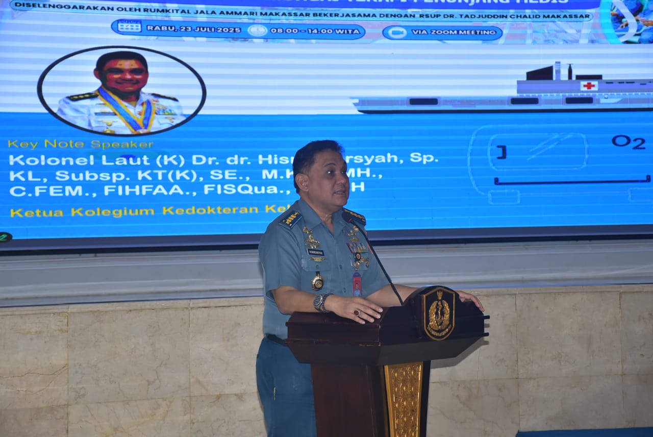 MAKASAR,rajawali1news.com – Dalam rangka memperingati Hari Ulang Tahun ke-48 Rumah Sakit TNI AL (Rumkital) Jala Ammari, Lantamal VI Makassar gelar webinar kesehatan bertema “Terapi Oksigen Hiperbarik Sebagai Terapi Penunjang Medis”( Rabu, 23 Juli 2025) .