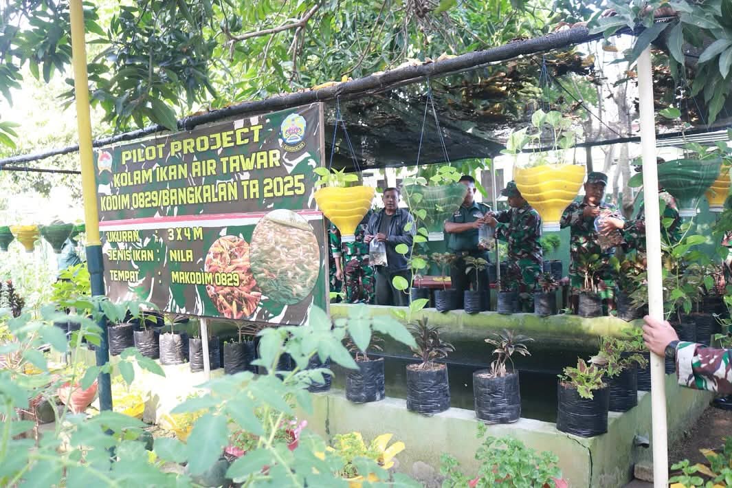 Dalam rangka kegiatan Pembinaan Ketahanan Pangan TA 2025 untuk mewujudkan swasembada ketahanan pangan di wilayah Kabupaten Bangkalan, khususnya di wilayah kecamatan kota Bangkalan, Kodim 0829/Bangkalan melaksanakan kegiatan budidaya Ikan Nila yang di Area perkebunan Kodim 0829/Bangkalan.