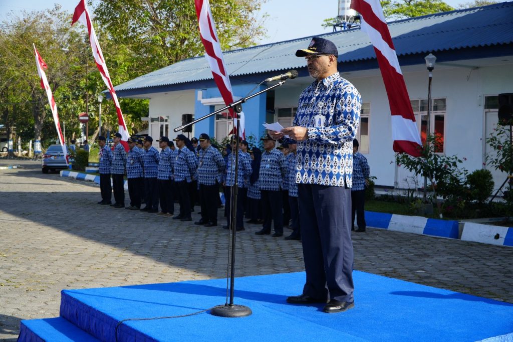 Suasana upacara semakin khidmat dengan iringan Drumband Gita Jala Sena, yang membawakan lagu-lagu perjuangan dan kebangsaan, menambah semarak serta semangat para peserta upacara.