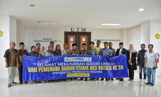 “Saya sangat mengapresiasi langkah Universitas Trunojoyo Madura yang memberikan hadiah umrah sebagai bentuk penghargaan. Ini bukan hanya memberikan kebahagiaan duniawi, tapi juga bekal ukhrawi. Saya berharap, penerima hadiah umrah ini dapat mendoakan kemajuan UTM, masyarakat Bangkalan, dan Madura pada umumnya. Karena doa orang yang sedang beribadah di tanah suci adalah doa yang mustajab,” tutur Wabup.
