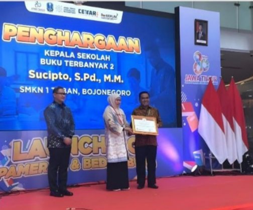 Surabaya,Rajawali1news.com – 4 Oktober 2025 SMKN 1 Tuban kembali meraih prestasi membanggakan ditingkat propinsi Jawa Timur Kepala sekolah SMKN 1 Tuban bapak Sucipto SPd M.M menerima penghargaan sebagai Kepala sekolah dengan buku terbanyak dalam acara Launching pameran dan pendidikan se-Jawa Timur Bedah buku karya insan yang telah digelar pada tanggal 3-5 Oktober 2025 di Atrium Grand City Mall Surabaya dalam rangka hari jadi propinsi Jawa Timur ke-80 tahun.