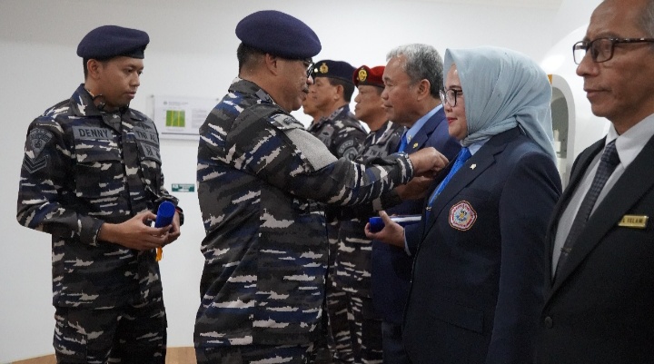 SURABAYA,rajawali1news.com – 7 Oktober 2025, Wakil Rektor I Dr. Widyastuti, drg., Sp.Perio. dan Wakil Rektor III Laksamana Pertama (Purn) Dr. Toto Dwijaya Saputra, S.T., M.Si(Han)., M.Tr.Opsla. menerima Brevet Kehormatan Kesehatan Penyelaman dan Hiperbarik yang disematkan langsung oleh Kepala RSPAL dr. Ramelan, Laksma TNI dr. Imam Hidayat, Sp.S., FINA., bertempat di Lakesla, Surabaya, Selasa (7/10).
