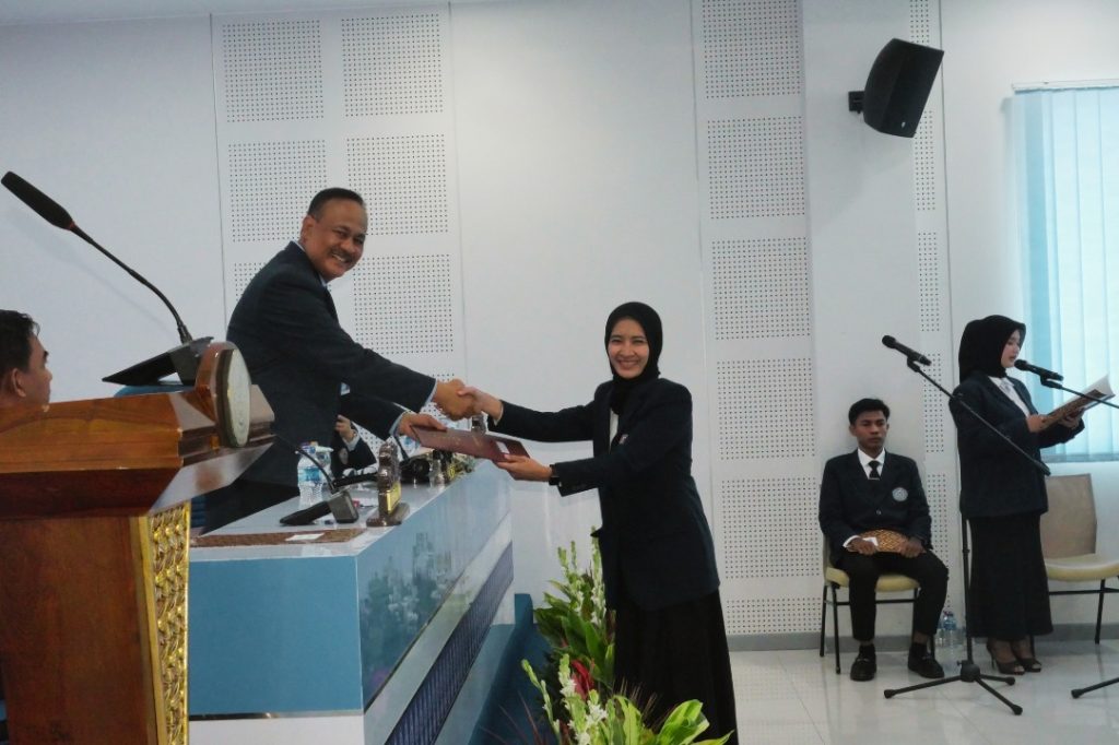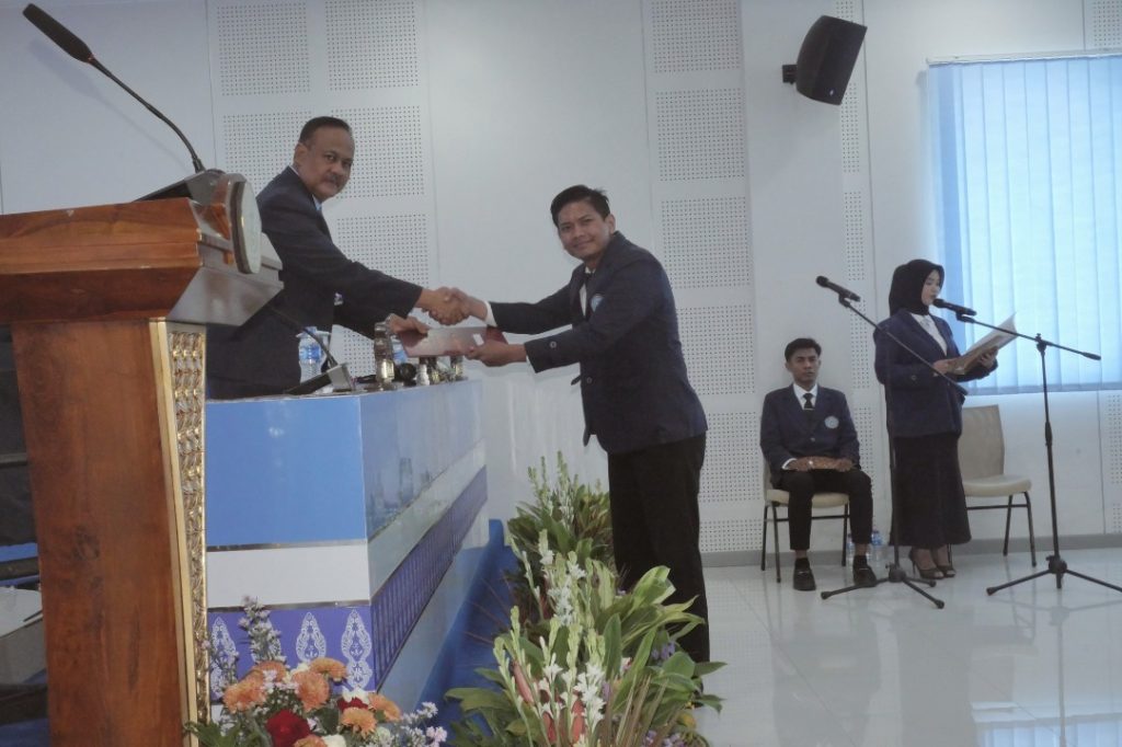Dalam kesempatan yang sama, Wakil Dekan I, Dr. Nurul Hudi, S.H., M.H., menyampaikan laporan akademik serta membacakan keputusan kelulusan para yudisiawan. Prosesi pengukuhan dan penyerahan transkrip nilai dilakukan secara simbolis, menandai kelulusan resmi mahasiswa program Strata Satu dan Strata Dua.