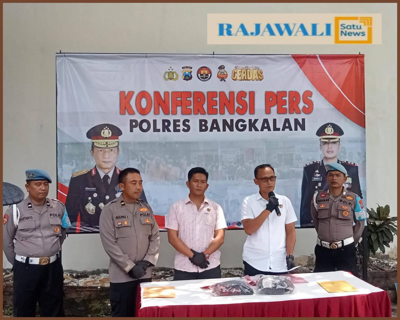 BANGKALAN,rajawali1news.com – Polres Bangkalan gelar konferensi pers terkait kasus pemerkosaan dibawah umur asal Desa Kelbung Kecamatan Sepulu, Kabupaten Bangkalan pada Selasa (14/10/2025) pukul 10.00 WIB, Dua pelaku diringkus Satreskrim Polres Bangkalan inisial JK (20) dan RN (21) di Pelangka Raya,Provinsi Kalimantan.Tengah, Sedangkan yang enam pelaku masih dalam pengejaran DPO.