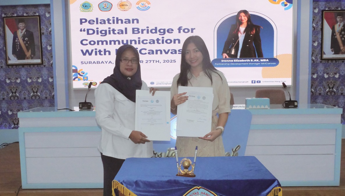 SURABAYA,rajawali1news.com — Universitas Hang Tuah terus memperluas jaringan kolaborasi global melalui kegiatan bertajuk “Digital Bridge for Communication with MiriCanvas”, yang diselenggarakan pada 27 Oktober 2025 bertempat di Ruang Seminar Gedung Rektorat Lantai 2 Universitas Hang Tuah.