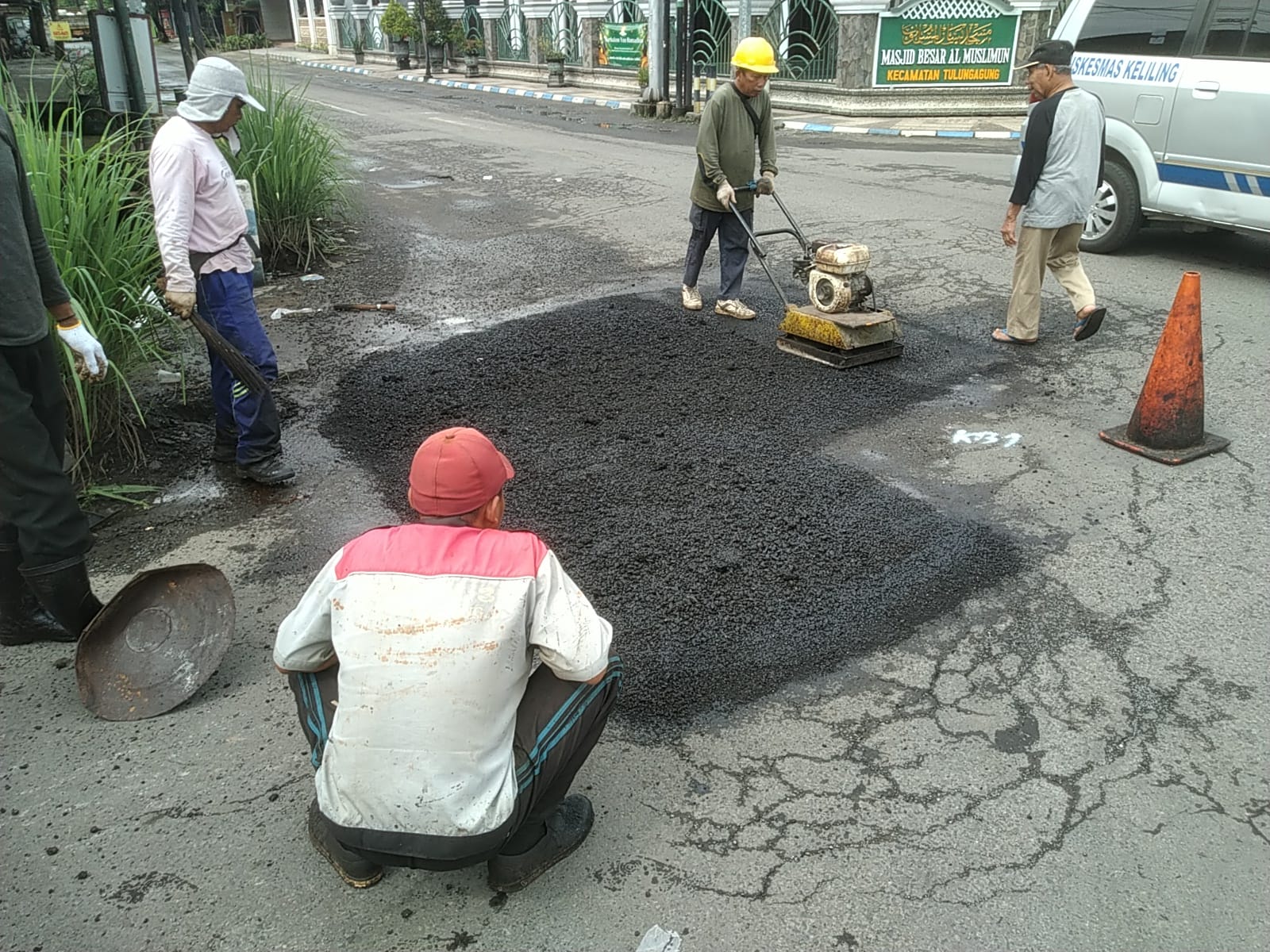 Perbaikan jalan di wilayah Kecamatan Tulungagung.