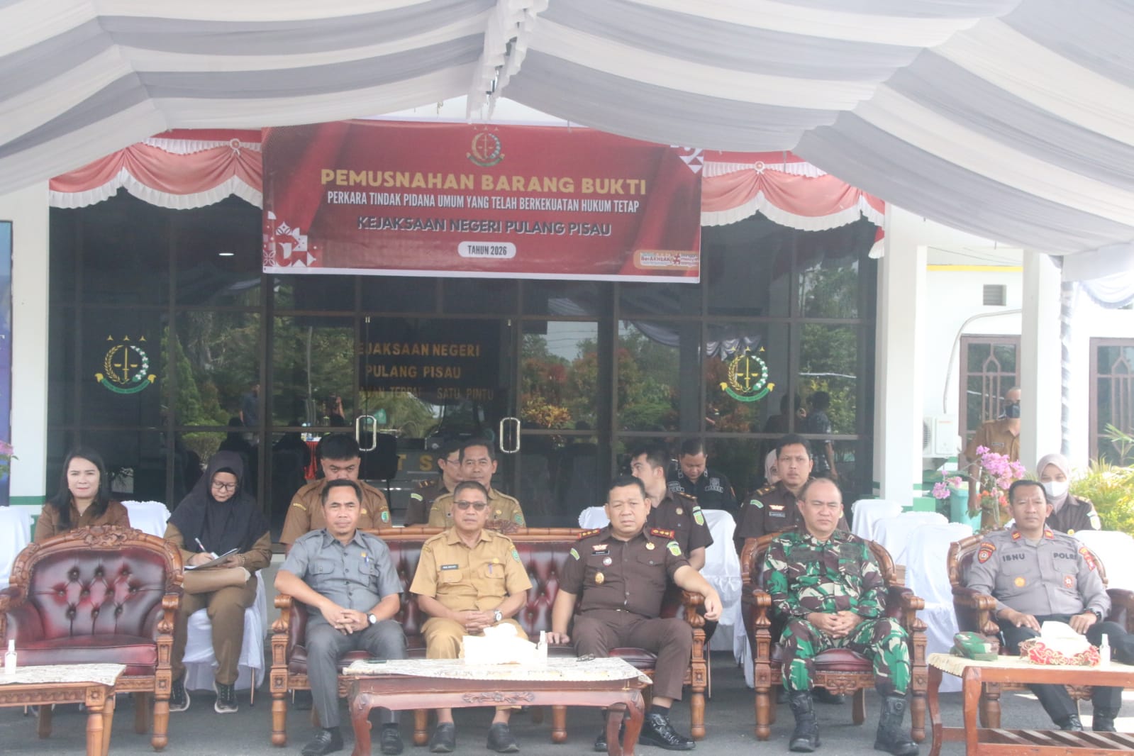 Kegiatan yang dilaksanakan di halaman Kantor Kejaksaan Negeri Pulang Pisau itu turut dihadiri unsur Forum Koordinasi Pimpinan Daerah (Forkopimda) sebagai bentuk sinergi antar lembaga dalam penegakan hukum.