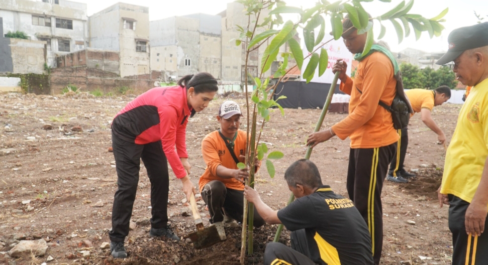 Caption : Kegiatan penanaman pohon di lingkungan Asrama Polisi Koblen, Surabaya.