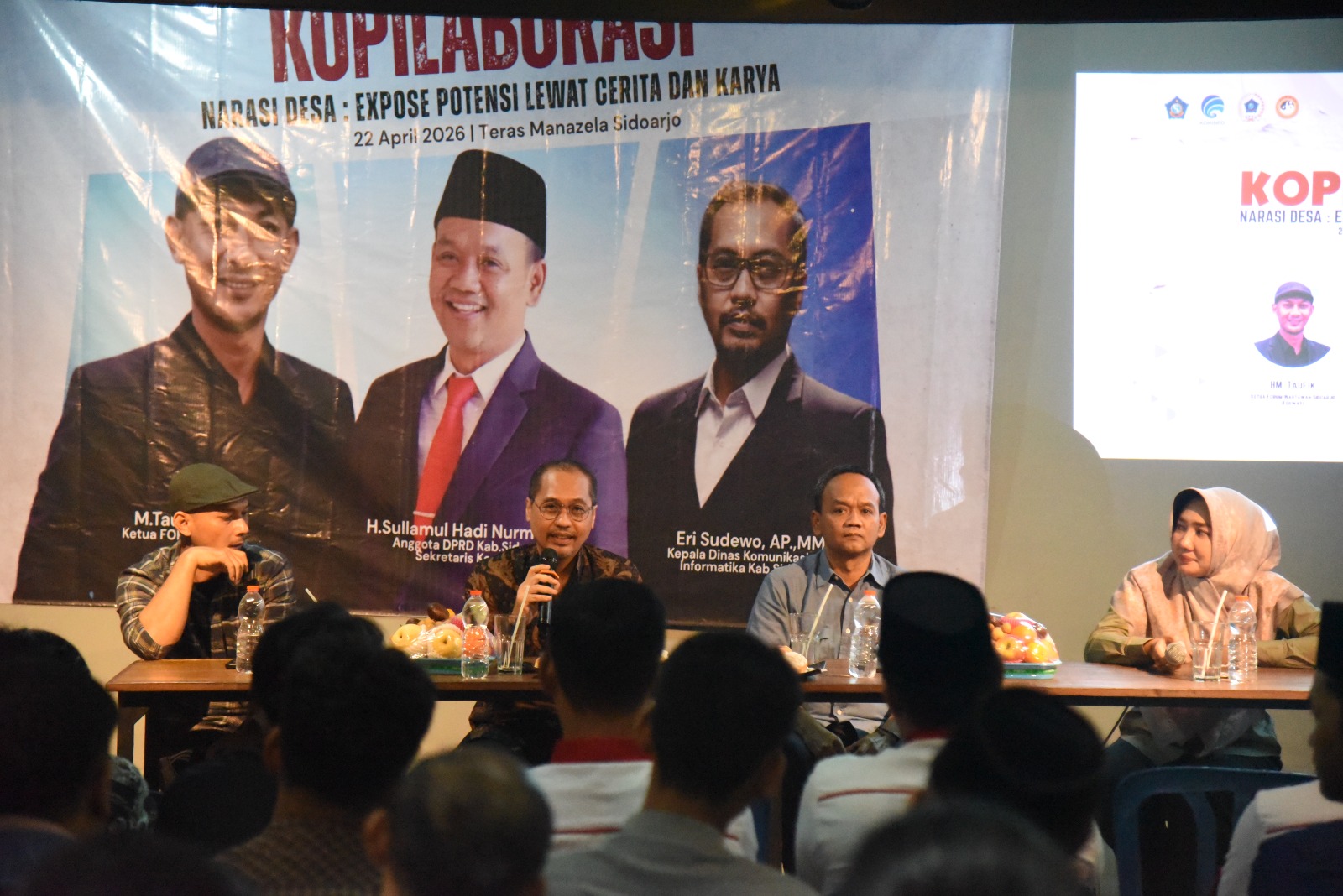 Caption : Kepala Dinas Kominfo Sidoarjo, Eri Sudewo dalam acara Kopilaborasi yang berlangsung di Teras Manazela.