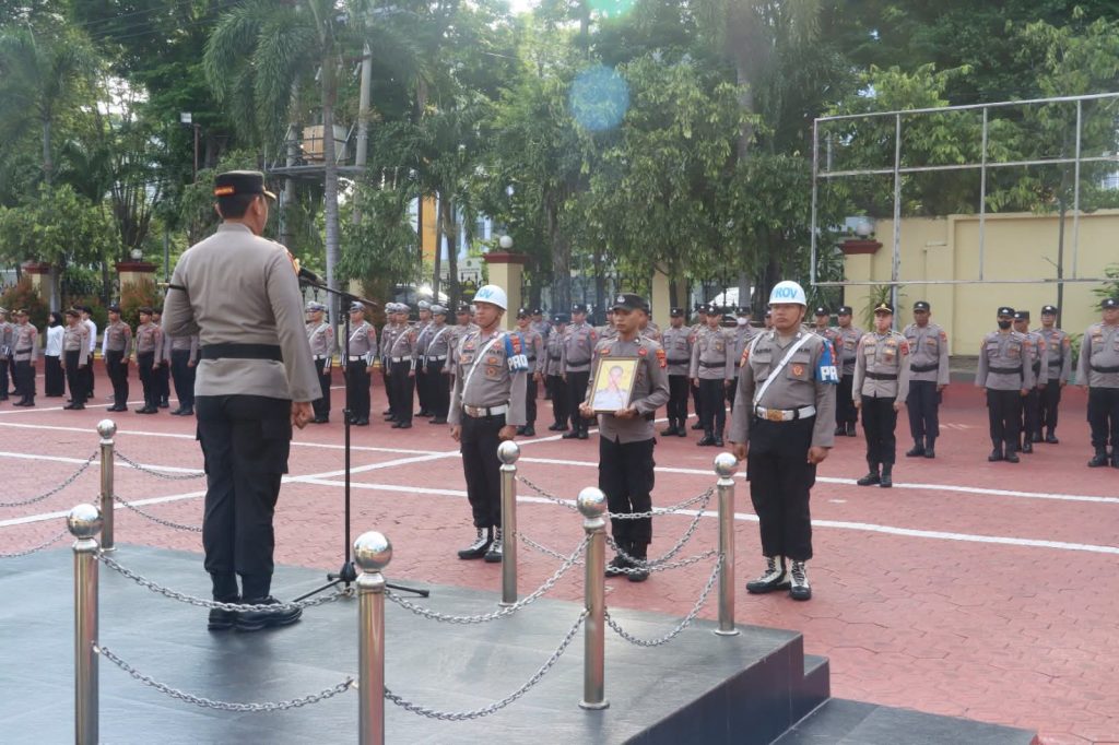 Foto : Kapolresta Palu, Kombes Pol. Hari Rosena, S.H., S.I.K., M.Si, pimpin upacara di lapangan apel Mapolresta Palu.